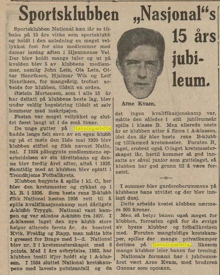 Dagsavisen 11. november 1935 - Sportsklubben National fra Rønningssletta fyller 15 år