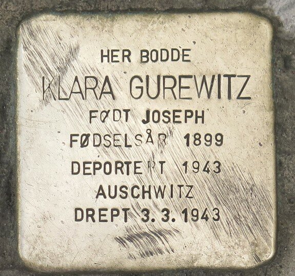 Under: Snublesteinen til Klara Gurewitz. Foto: Jødisk museum, Trondheim.